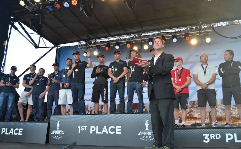 Award ceremony-winners Oracle Team Spithill, JP Morgan BAR, Team Artemis Hutchinson