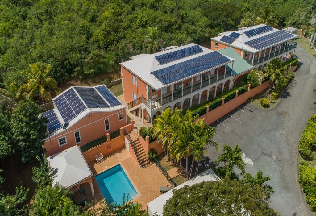 Arawak Bay: The Inn at Salt River is a 15 room bed and breakfast on St. Croix’s North Shore! This boutique inn, completed in 2007, is turn-key, constructed with poured concrete and complete with SOLAR with net-metering. Arawak Bay Inn has all of the amenities of a modern hotel yet retains the charm and ”home away from home” feel of a quaint Inn. The refreshing swimming pool with a poolside bar and grille and ample sunny deck space was added in 2008. This boutique hotel has a welcoming lobby that is flanked by the dining room (with a full kitchen off the side) and a cozy, yet, a spacious lounge where guests can mingle with one another. Each room has keyless entry locks, Cat6 access points for high-speed internet to service travelers, and split AC units with interior & exterior access.