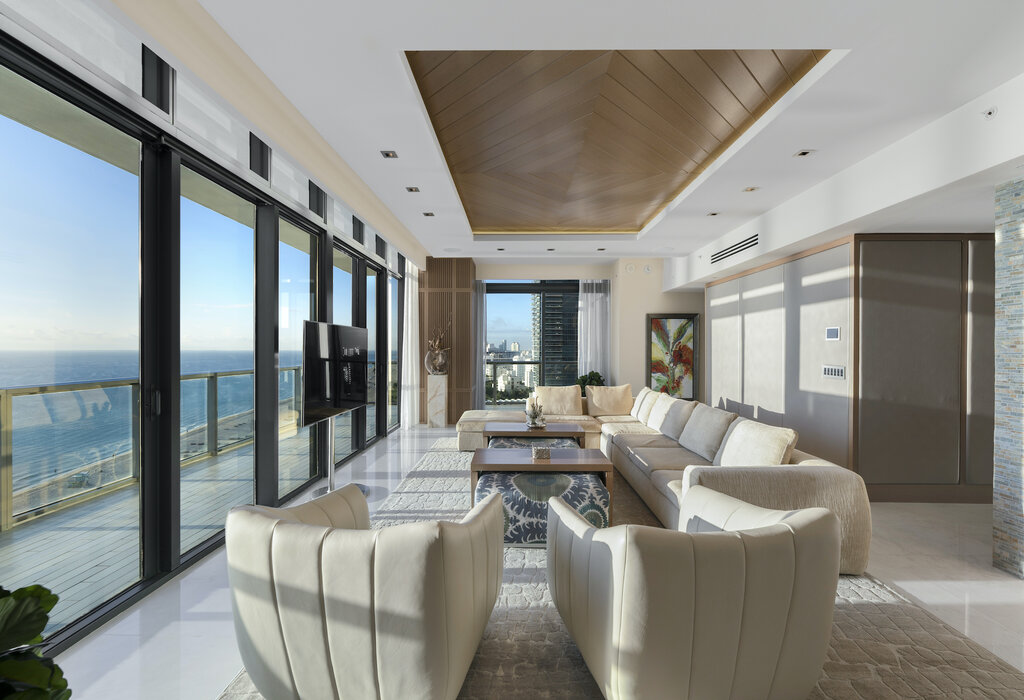 Expansive wraparound terraces and 12-foot floor-to-ceiling glass surrounds this magnificent penthouse for the unsurpassed ocean and beach views, unimaginable sunrises and sunsets, and the Miami Skyline.
