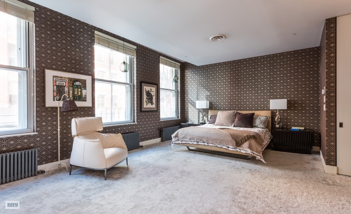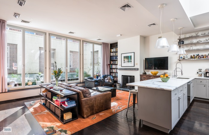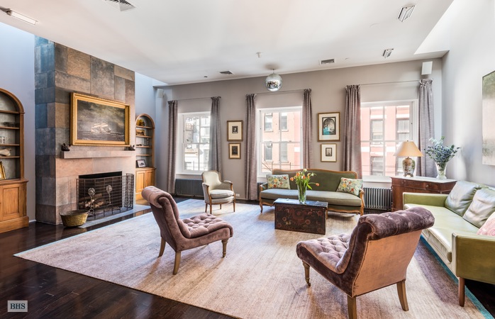 Located on a quiet cobblestone street just two blocks from Duane Park, the five-story, exceptionally lit residence measures approximately 13,442 square feet, with seven bedrooms, an elevator, three wood-burning fireplaces, three laundry facilities, and plentiful skylights throughout, the listing states.