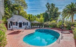 Located near Wattles Mansion and surrounded by legendary real estate such as the former homes of Orson Welles, Samuel Goldwyn, and Al Jolson, this newly listed property features original period pieces and accents throughout the house, according to the listing, including a “wood-paneled screening room, a garage that has been converted to a production offices, a gym, three fireplace, numerous outdoor entertaining areas, parking for multiple cars” and a pool.