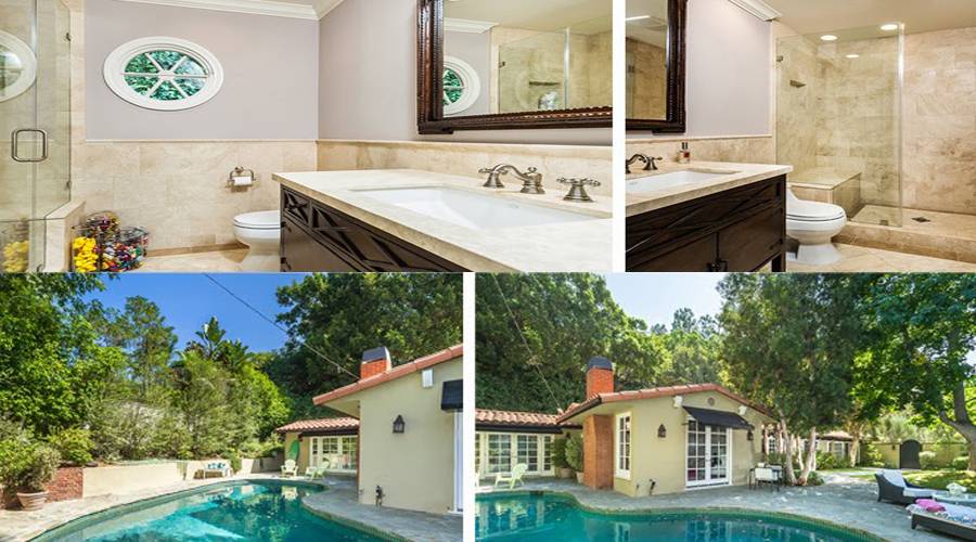“Twilight” star Ashley Greene recently purchased this $2.5M mock-med listing in Beverly Hills as her new permanent residence. Though the home sits on a measly .36 acres of land, the yard is filled with mature trees and shrubs, offering plenty of privacy for relaxing in the gorgeous lagoon-style pool.