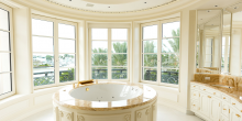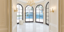 Described as “something completely different than what’s been done in America,” this mega-mansion is owned by Middlesex Corp.’s Robert Pereira, who had planned on using the estate as his residence, but has instead chosen to sell it. It was taken off of the market temporarily only because the renovations to the main house hadn’t yet been completed.