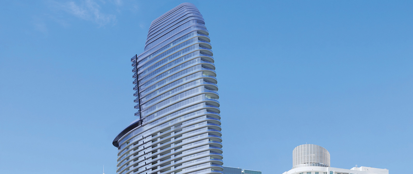 Designed by Revuelta Architecture and Bodas Miani Anger, the 391-condominium building is to soar in curvilinear glass and steel in the shape of a giant sail. It will boast seven penthouses and a single duplex penthouse, which will come with private pools and expansive balconies, as well as a gamut of one and four-bedroom apartments. Situated on one of the few remaining developable parcels in downtown Miami, all units are to flaunt striking vistas of Biscayne Bay and the Atlantic Ocean as well as splendid living spaces.