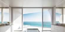 The opulent penthouse features a number of posh amenities, including unobstructed 360-degree ocean views, expansive living terraces from every room, along with a private elevator, spa, and pool.