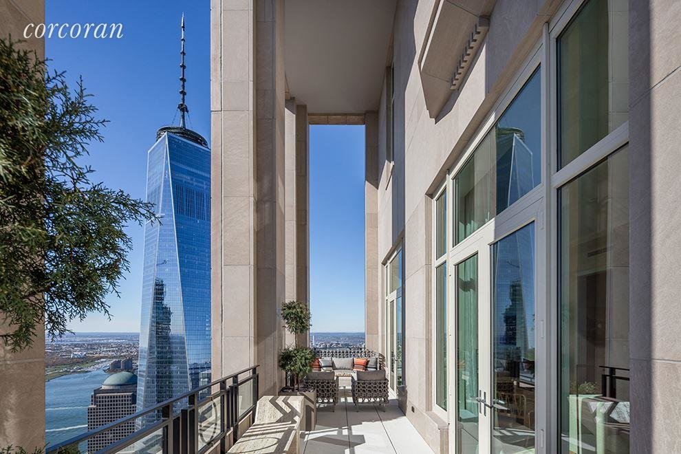 This half floor duplex penthouse is located on the 78th and 79th floors of the 5-star 30 Park Place, Four Seasons Private Residences New York, Downtown. Developed by Silverstein Properties, Inc., and designed by Robert A.M. Stern Architects, this residence’s sweeping river views, the downtown skyline, New York Harbor, the 9/11 Museum and beyond. Some of the otherworldly features include a double-height Loggia, gas burning fireplace, private elevator, library with wet bar, formal dining room and media room – not to mention all of the amenities in the Four Seasons.