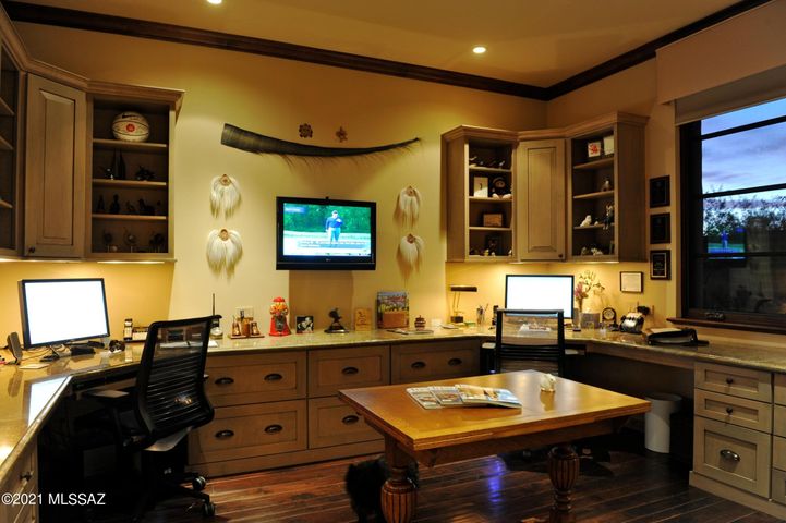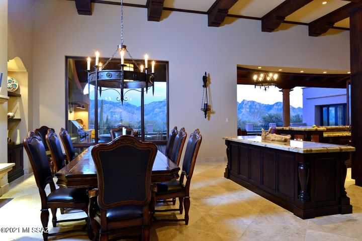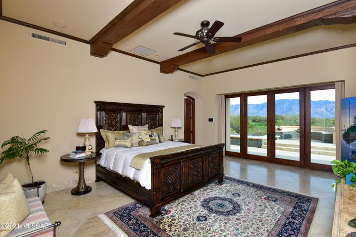 Inspired by Tucson’s iconic Arizona Inn and set on a fabulous view lot overlooking Stone Canyon’s course with panoramic views of Catalina Mtn range! Spectacular Santa Barbara style, 5,571 SF plus 576 SF quest house (4BR, 5BA, Library/Media, Office, Exercise & Observatory) in exclusive guard-gated Stone Canyon. Entertainment-oriented great room with central bar kitchen & scullery flanked by dining & living areas. French doors open accordion style to deep cov’d terrace with full BBQ kitchen, 2-way Fpl to Lounge, lap pool, spa & firepit. Galleries for art, 2×2 limestone & reclaimed wood floors, 6 Fpls, solar, Crestron system, circular drive. Ron Robinette architecture, Lori Carroll design, Willmeng Homes masonry construction. Exquisite finishes, finest materials, totally private.