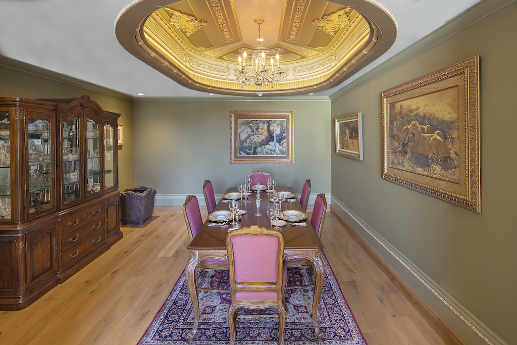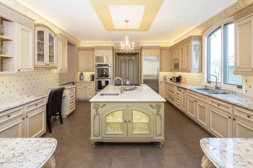 Reminiscent of exquisite French Rococo architecture, this custom-built residence offers an atmosphere of elegance and comfort, set in the coastal enclave of Kings Road in Newport Heights. Key elements of the bespoke French Mansions of the Louis XIV era of the 1700s including French oak parquet flooring, decorated ceilings, overdoor decoration, exterior banding and inclusion of a Chinese Room. A well thought out, Inverted Floor Plan, offers four en-suite bedrooms, four powder rooms, opulent formal dining, and living rooms. A well designed, lavish kitchen with custom cabinetry, luxurious stone countertops and top of the line appliances is adjacent to a comfortable family room; affording dramatic ocean views from main level living areas and master bedroom suite & office. Extensive moldings and millwork by JP Weaver, cast from molds of the original French residences. A top-level office nook opens to a 3,600 sq. ft. roof deck to soak in the 360-degree views of ocean, harbor, Catalina and vibrant city lights.