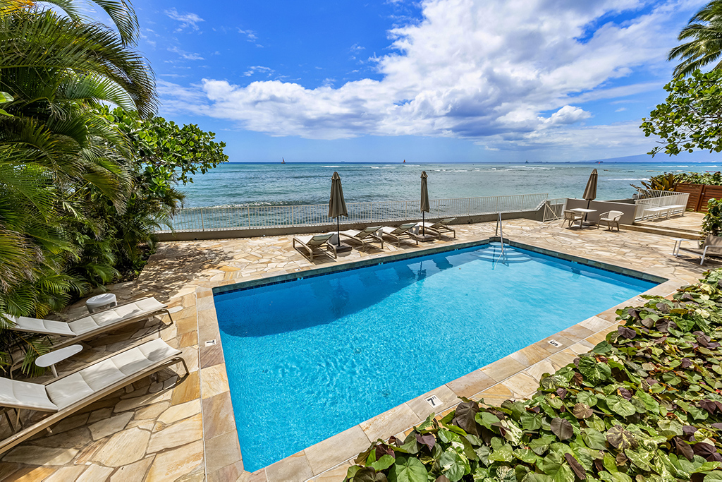 Nestled at the base of the iconic Diamond Head, between the lush expanse of Kapiolani Park and the golden sands of Waikiki Beach, lies one of Oahu’s most treasured locations – aptly named “The Gold Coast.” Here, beauty and convenience come together in a truly one-of-a-kind setting. This beautifully renovated apartment, crafted by a renowned design team, is ready to welcome guests and create unforgettable memories. The flexible layout offers space for a home office or alternate dining areas – whether you prefer views of the sparkling blue ocean or majestic Diamond Head. A secure, oversized underground parking stall makes coming and going a breeze. Just steps from your door, a newly renovated oceanside gathering area with a grill awaits, alongside a heated saltwater swimming pool. Or take a stroll to the oceanfront gate and dive into the ever-changing blues of the Pacific.