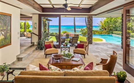 This magnificent Diamond Head “Cove Area” beachfront masterpiece harmoniously fuses traditional Hawaiian architectural elements with an open modern lifestyle floorplan. Located on a quiet lane off Diamond Head Road, this home is truly a treasure to behold. The grand reception areas lead out to extensive wraparound lanai areas, a covered grill space, and a beachside seating area – perfect for enjoying sunsets and drinks while taking in the endless views of the Pacific Ocean. The upper level boasts a large primary ocean-view bedroom, two additional en-suite bedrooms, and an unmatched office with ocean views that you’ll never want to leave. A refreshing pool, lush landscaping, elevator, unmatched location, style, comfort, and distinction define this Diamond Head gem.