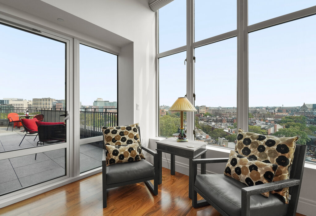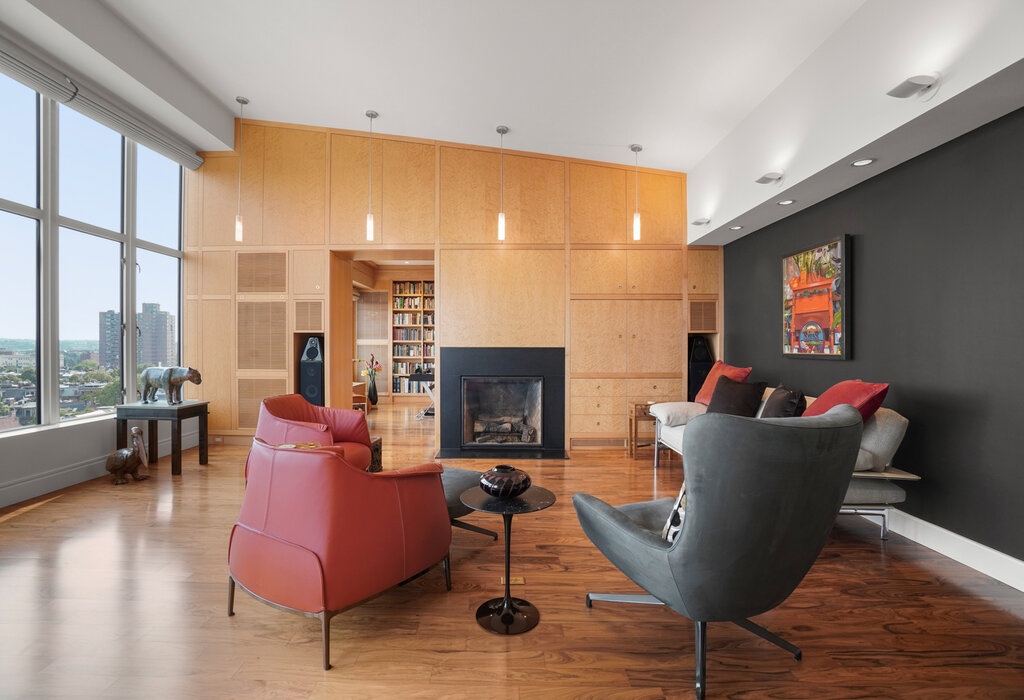 Atelier 505, one of Boston’s Premier Luxury Buildings, provides exceptional services – 24 hr concierge, doorman, and on-site property management. This stunning, custom-designed Penthouse has been meticulously renovated with a sophisticated and neutral palate. With its very high ceilings and double-height windows and custom built-in birds eye maple wall of storage, tv cabinet surround gas fireplace complete this home! 3 Bedroom w/ 3rd bedroom converted to office/ library, 2.5 bath features a spacious Living/Dining area with amazing views and direct southern exposure. Large open Kitchen and Norwegian granite countertops, high-end appliances, large pantry, and custom cabinets. All entertaining areas face front, overlooking the large walk-out Terrace. Master Bedroom with walk-in closet and En-Suite Bath, with decor vanity, large glass shower, separate tub, and custom closets. Building amenities clubroom & caterers kitchen, and a separate fitness room.