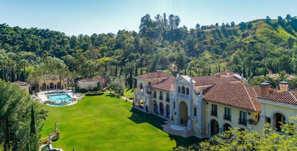 On over seven acres, accessed by its own street, this one-of-a-kind property took over seven years to create. Expansive gates open to a 30 car courtyard surrounded by 40 foot tall Canary Island palms and a setting worthy of the best Italian palazzo. Inside the mansion, approximately 20,000 square feet afford every possible amenity from high ceilings to large and formal gathering areas to small and intimate spaces. A four plus acre backyard offers views to a pool with pool house, two-story guesthouse, tennis court, two bedroom guest house and a walking/jogging trail that surrounds the estate. A separate lot comes with possibilities for expansion or separate development. This is one of the finest estates ever offered in Beverly Hills.
