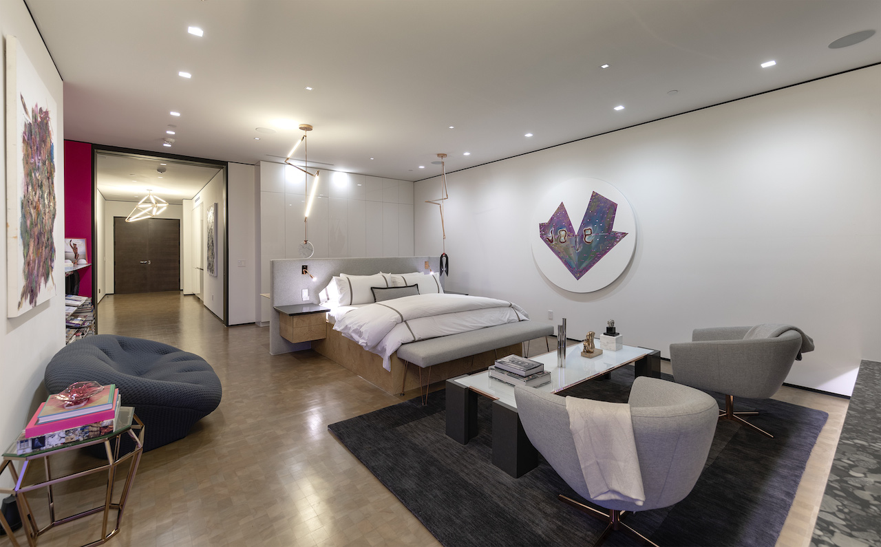In prime Beverly Hills — This newly built and exceptionally sophisticated contemporary residence is a captivating showplace, designed for the visionary, with light-filled spaces and walls for art. Soaring ceilings highlight a brilliant 2-story entry, while a broad open floorplan and glass sliders connect the interior with the exterior, leading to an oversized covered patio, swimming pool, step-down terraces, outdoor bar and a guest house with a yoga studio. An inspiring Boffi custom kitchen helps one contemplate a formal gathering, with rich Carrara marble flooring, black basalt countertops, and state-of-the-art Gaggenau appliances. An invitation upstairs reveals an opulent master bedroom suite, secondary bedrooms and a spectacular, and incredible sundeck, while a finished lower level houses a theatre with professional grade seating, art studio, additional bedrooms, maid’s quarters and garage. This home is a rare find in the Flats.