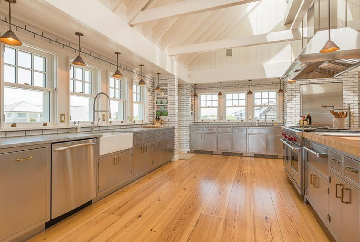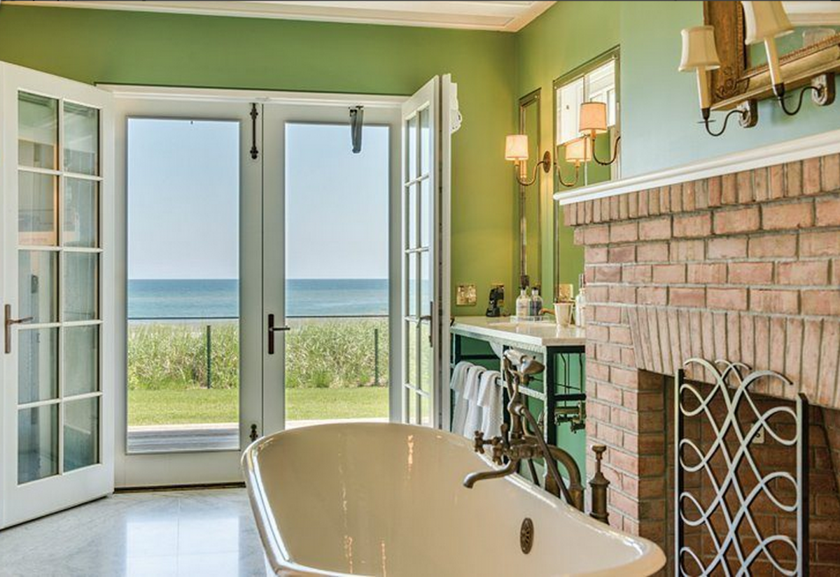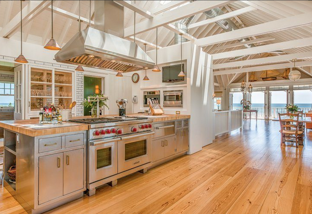 Along with a 145-foot private stretch of beach, the gorgeous 5,500-square-foot estate touts a state-of-the-art kitchen complete with a butler’s pantry, and a two-car garage attached to a spacious one-bedroom guest suite.
