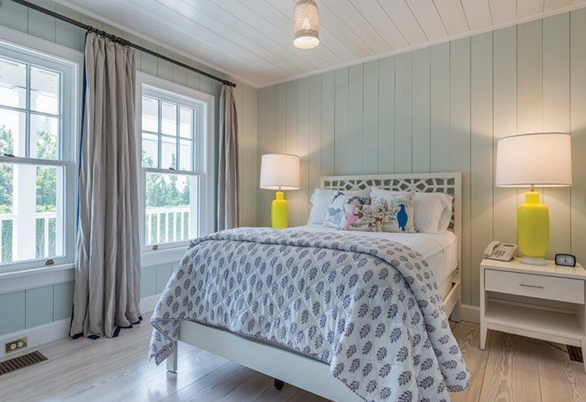 Among the bright and charming home’s most notable features is its intriguing inverted floor scheme—its four en suite bedrooms are located on the ground floor, while its kitchen, dining room, and living room are on its second. The unusual plan is meant to maximize the property’s marvelous ocean views.