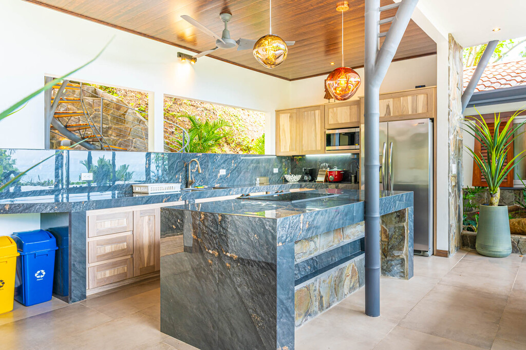 Completely renovated from top to bottom, this custom-designed ocean view estate has everything you could ever want for living your best life in Costa Rica. Blending the best of indoor and outdoor living, this thoughtfully-designed custom home has been developed with ease, enjoyment, and entertaining in mind. Uniquely set in the Uvita mountains, this stunning gem has a wonderfully picturesque view of the ocean that is lovingly framed by mature jungle trees and a winding river below. The property itself has you feeling like you are in a completely remote location while at the same time is located only a few minutes from the center of Uvita proper. Truly the best of both worlds in this highly-desired area.