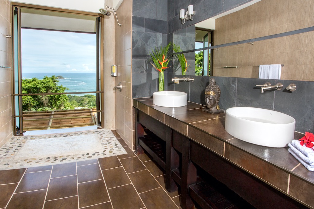 Nestled on a hillside Manuel Antonio, Costa Rica, overlooking the Pacifico Ocean and featured in Ocean Home and Su Casa magazines, Villa Perezoso is an absolute storybook dream home that envelopes you in nature, beauty and wildlife. This heavenly, modern Balinese oasis, located on a private dead-end road has spared no detail with its design, architectural features, and furnishings. It’s truly one of a kind. This Multi-level estate boasts 8 bedrooms and 11 washrooms, with unparalleled exotic beauty. As the name Villa Perezoso “sloth” suggested, it was named after it’s the first resident and you will almost always find one of these delightful friends, in the guarumo tree overlooking the beautiful Manuel Antonio bay. In addition, you will see all 3 types of local monkeys, toucans, and a variety of birds along with other species of wildlife to interest and entertain you.