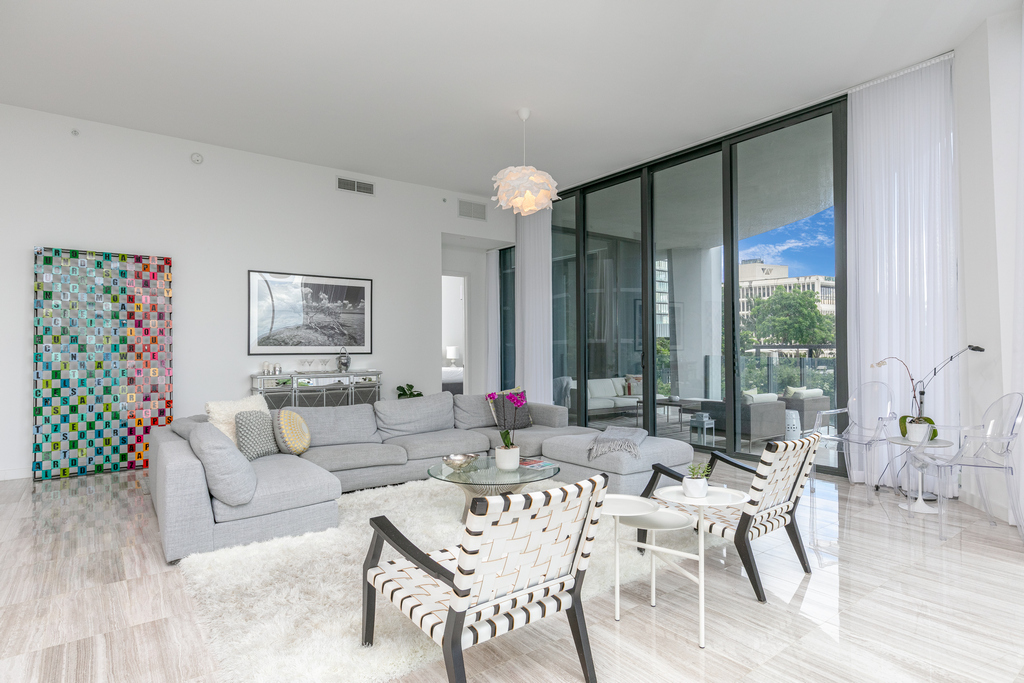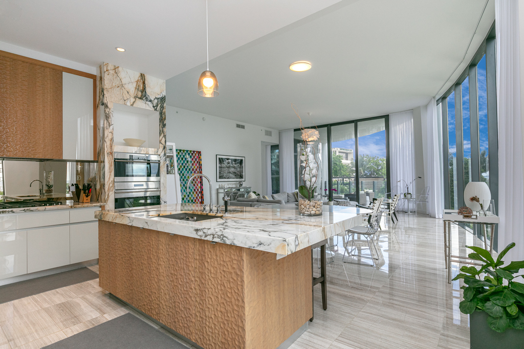 Two Park Grove is one of Coconut Grove’s top luxury developments. This beautiful 4-bedroom, 5.5-bathroom residence features 4,034 total square feet and 12-foot ceilings with breathtaking views of the Bay, pools, and gardens throughout. Combining everyday functionality with resort-style amenities, Park Grove includes an on-site butler, spa, full fitness center, private screening room, four pools with private cabanas, one private and one public restaurant, and much more. The lobby and common area spaces at Two Park Grove were designed by Meyer David Studio, the lavish kitchens and bathrooms were designed by famed interior designer William Sofield.