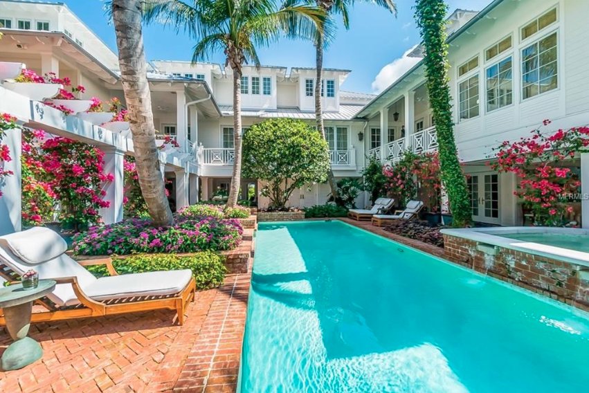Nestled on the aquamarine shores of Gasparilla Pass on the North Shore, this breathtaking waterfront mansion is outstanding in quality, comfort and artistry. The spacious living and dining spaces, 7 en-suite bedrooms with access to a terrace and beautiful water or courtyard pool views, media room and a new Trex dock, 1.4 seaside acres of gardens and pathways, this luxe property is the perfect home for great gatherings and entertainment while enjoying of superb water views.