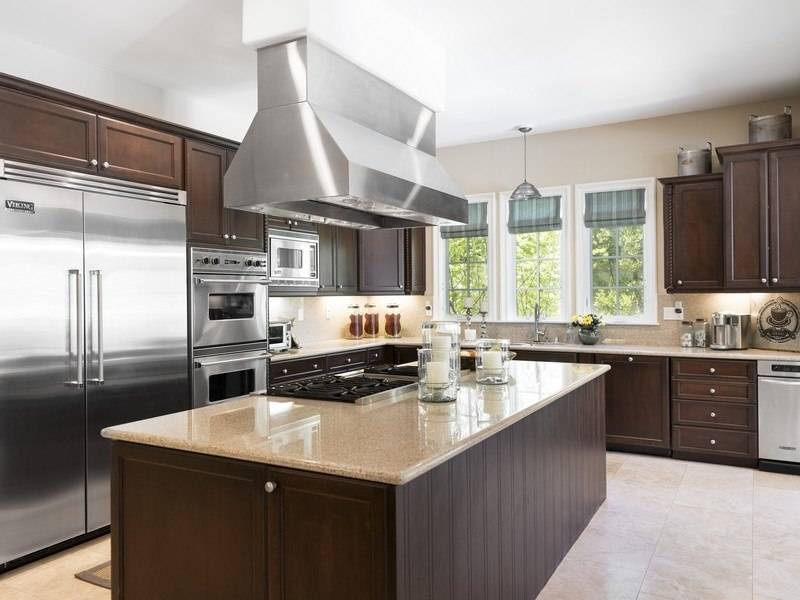 The home’s gourmet kitchen comes complete with a center island, granite countertops, custom cabinets, and a breakfast nook, while the master suite boasts his-and-hers walk-in closets, a sitting area, and an oversized balcony with views of the yard.