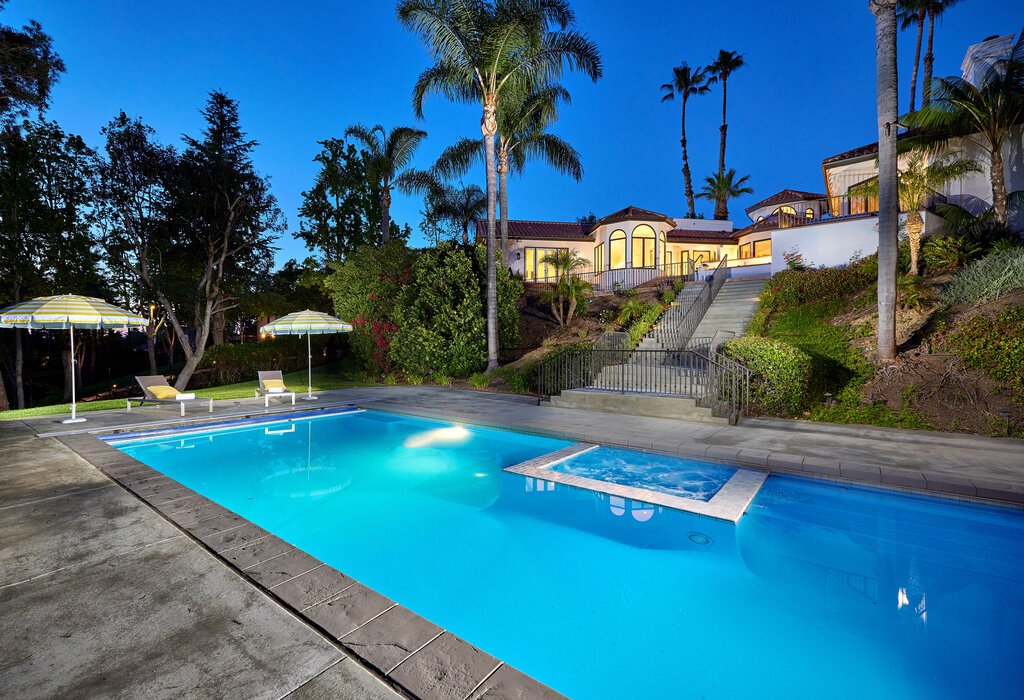 This exquisite custom estate is situated on 1.35 acres in the sought-after exclusive community of Fairbanks Ranch and is the ultimate dream home for those who insist on the finest in luxury living, design, and craftsmanship. Upon entering, you are greeted by a stunning 2-story foyer, a light-drenched bright and airy aura, vaulted ceilings, generous living spaces, white oak plank flooring, and numerous cozy fireplaces. The main level hosts a luxurious master suite with a soaking tub, dual vanities, an oversized walk-in shower, 3 ensuite guest rooms, and a gym. The lower level impresses with 2 additional guest suites providing a relaxing retreat, a game room, wine cellar, and 3 car garage. Explore endless entertaining opportunities in the formal living and dining rooms, great room, and gourmet kitchen equipped with an abundance of cabinetry and quartz countertops, plentiful storage, a center island, and casual breakfast/dining nook, a corner fireplace, dual islands, and stainless-steel appliances. This striking home was designed to make outdoor living as luxurious as indoors and creates a sleek juxtaposition to the natural beauty and Westerly tree top views surrounding it. The picture-perfect backyard features a top-level patio, fire pit, and spa. The gorgeous garden level boasts a sparkling pool, a second spa, and an entertainment pavilion with a bar and full bath. The orchard completes the lower level.