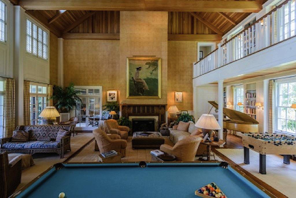 The main residence—called “Shepard Krech House”—was built in 1931 and renovated in 1990 by architect Peter Marino. It has a three-story living room, sunken library, gourmet kitchen, dining area, and third-story gym.