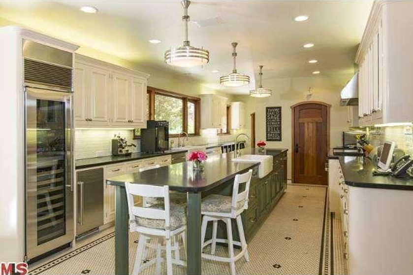 Striking a balance between old world charm and modern convenience, the home’s well-appointed living space boasts a state-of-the-art screening room; a library; a chilled wine cellar; and a gourmet chef’s kitchen equipped with an eight-burner stove and a massive island in the center of the room, making it an ideal spot for entertaining.