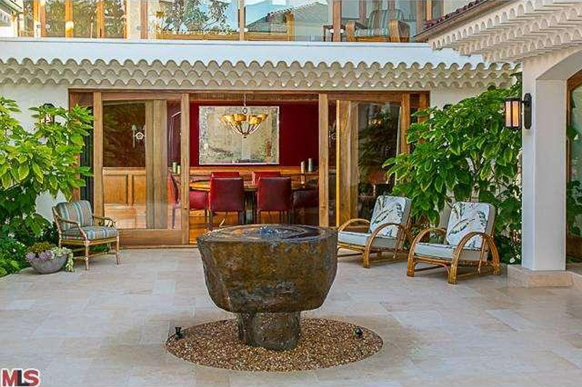 The stunning eight-bedroom, 11-bath, Spanish-style residence sits on close to an acre of landscaped grounds alongside a tennis court, a large resort pool surrounded by a wooden deck, and a unique indoor courtyard and fountain.