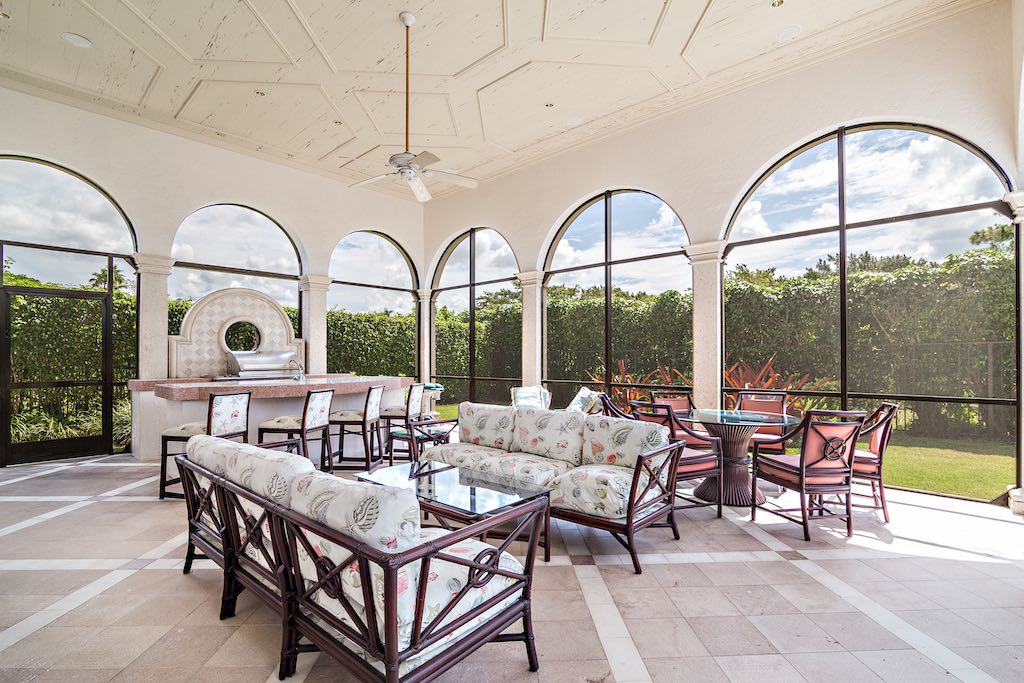 Sited on a ½ acre lot in the Vintage Oaks section of The Polo Club, this custom 2004 estate home offers 4 bedrooms, 5 full and 4 half bathrooms and a side-loading 2 car garage. With an impressive 8,513 sf of living area and 10,327 total square feet, this home is complete with impact glass, whole-house generator, Italian marble flooring and luxury upgrades throughout. Enter through the double door entry to the grand foyer that leads into the formal living room with gas fireplace, wet bar, and views of the pool and patio area. The formal dining room has tray ceilings with detailed moldings. The French country kitchen has a prep island with sink, custom pantry, and a breakfast area. The adjacent family room leads to an oversized and comfortable screened patio with summer kitchen. The ground floor master suite encompasses the east wing of the home with a sitting room, his and her’s bathrooms and custom closets. A wood paneled office, large music/game room, and guest room complete the downstairs living area. The second level has 2 oversized, ensuite bedrooms. Other features include a screened summer kitchen, paved circular driveway, and professional landscaping. Palm Beach style pool and sunny patio area complete this magnificent estate that’s been designed for entertaining.