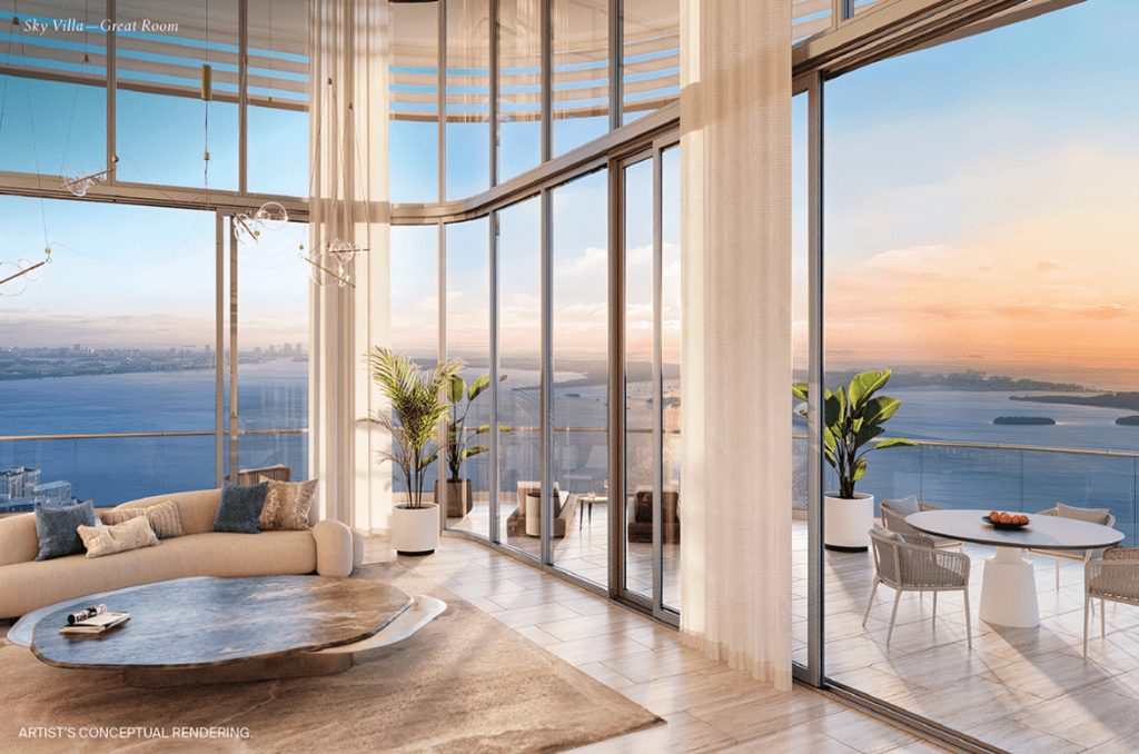 Floating atop the most exceptional residential tower in Miami, the penthouse residences hover in the sky with incomparable views of Biscayne Bay and beautiful Brickell below.