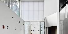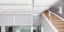 Supported by a white metal framework, the panelling, gives the house a glowing white coloring that manages to blend with the neighbouring properties.