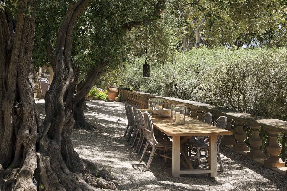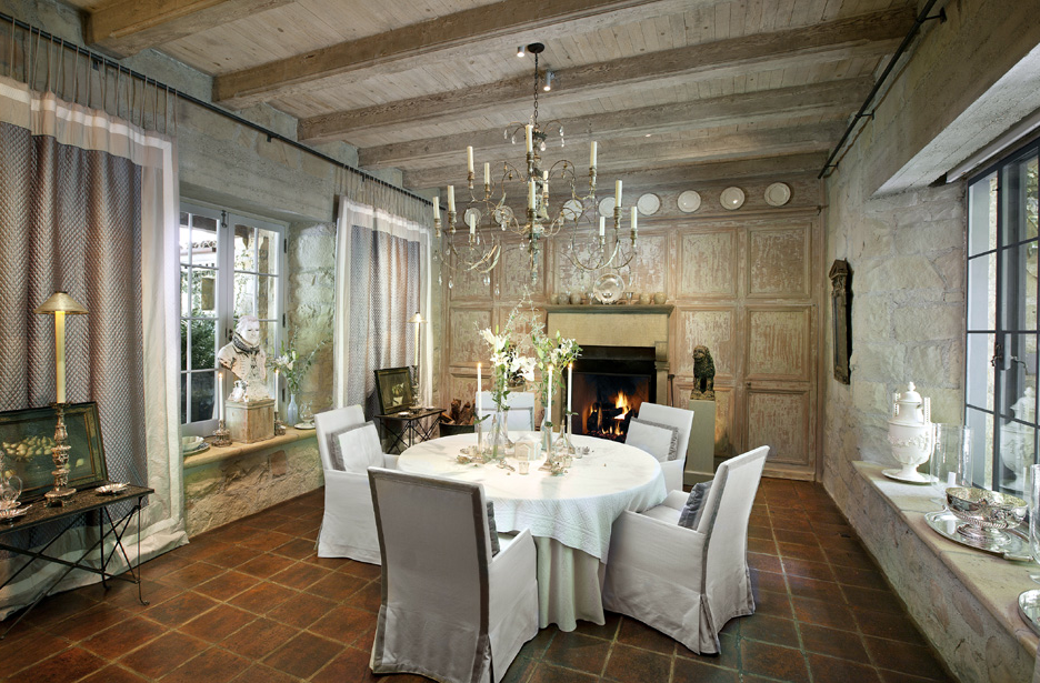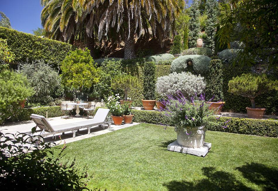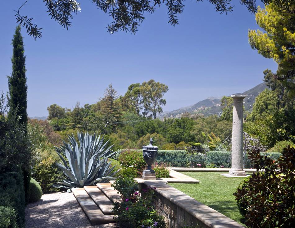 Their outdoor space has an equally old-world feel with roman columns, gorgeous gardens and old stone walls.