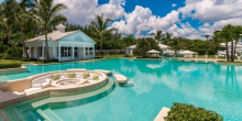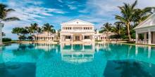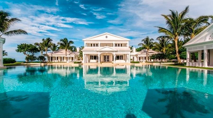 10,000 square feet of living space includes a massive main house, pool house, guest house, tennis house and beach house, a personal water park with lazy river and water slides (according to WSJ) and a helipad.