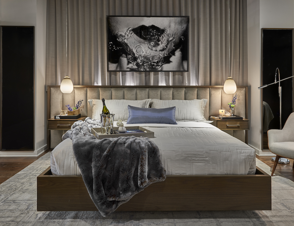 Kelly, Senior Designer: The custom bed with integrated nightstands and a channeled headboard is my top pick! The materials are timeless and inviting; the walnut paired with the velvet upholstery adds so much warmth to the design. While the headboard and bed frame have low, modern profiles, I love how it complements the classic channel tufting which could lean transitional in the right setting. Attention to detail was not missed here – even the mitered joints of the floating nightstands mimic the joints of the floating bed frame.