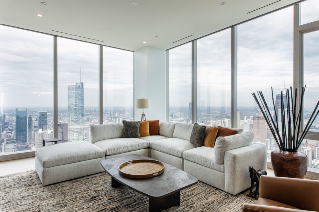 Perched on the 92nd floor, the once-in-a-lifetime residence is currently listed at a whopping $18.5 million. The opulent space spans 6,986 square feet above the bustling streets of Chicago. With soaring 13-foot ceilings and floor-to-ceiling windows, the interiors create an immersive and expansive atmosphere. The 360-degree panoramic views offer picturesque views of Lake Michigan and the vibrant cityscape. This two-story penthouse is thoughtfully designed for luxurious living and grand entertaining.
