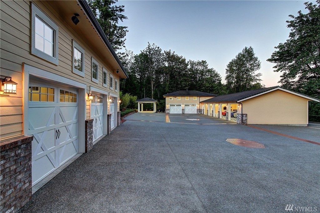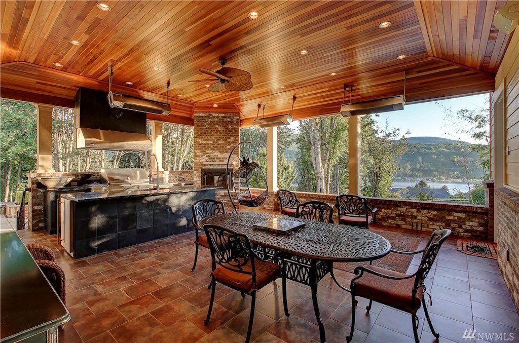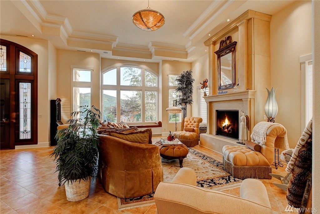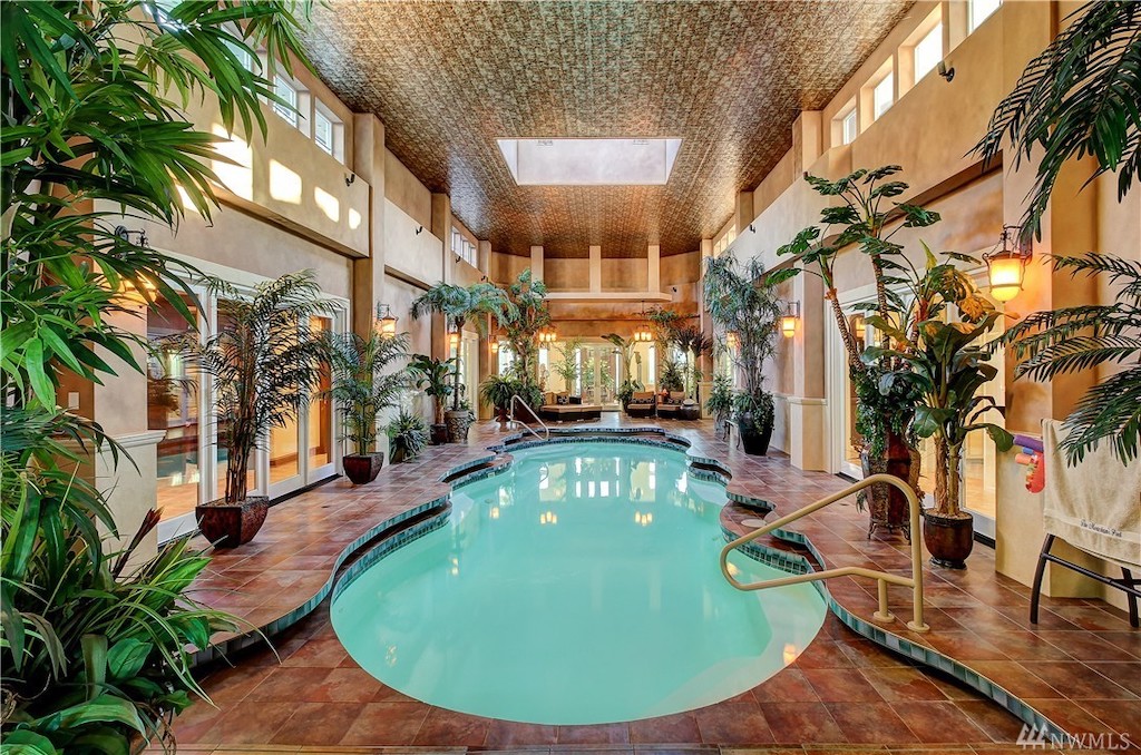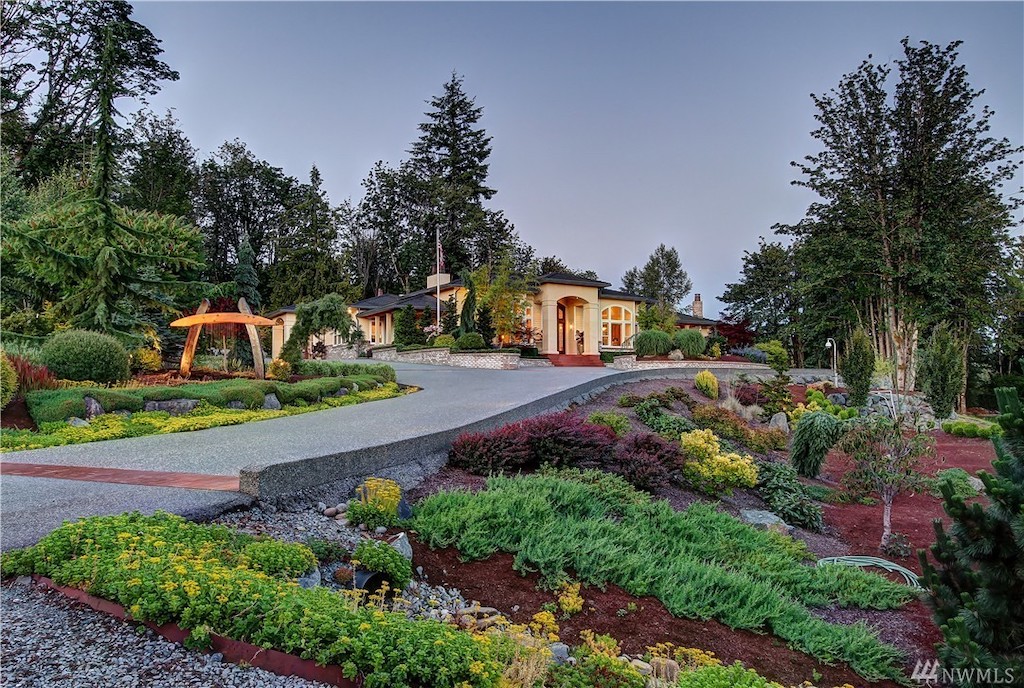 Situated on nearly three acres in the gorgeous region of Washington between Seattle and Vancouver, B.C., this one-level, 7,400 sq. ft. residence is an entertainer’s or a car lover’s dream. The gated estate features meticulously manicured grounds, a spectacular indoor swimming grotto, an outdoor kitchen and living area with mountain and lake views, a temperature-controlled wine cellar, library, and classic-styled bar and game room. The home has an attached garage plus a separate shop/garage with commercial-grade auto lift, accommodating storage and parking for 12 cars. Beautiful wood and tile work and an abundance of windows throughout have created a home that is bright, warm and inviting.
