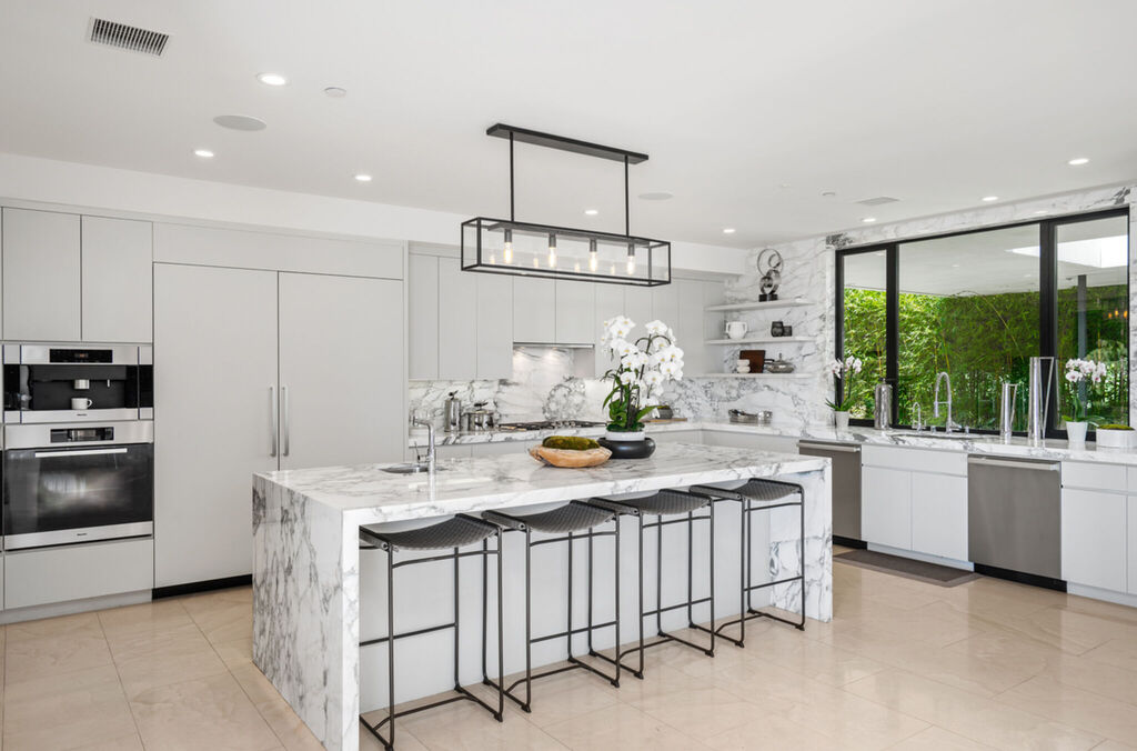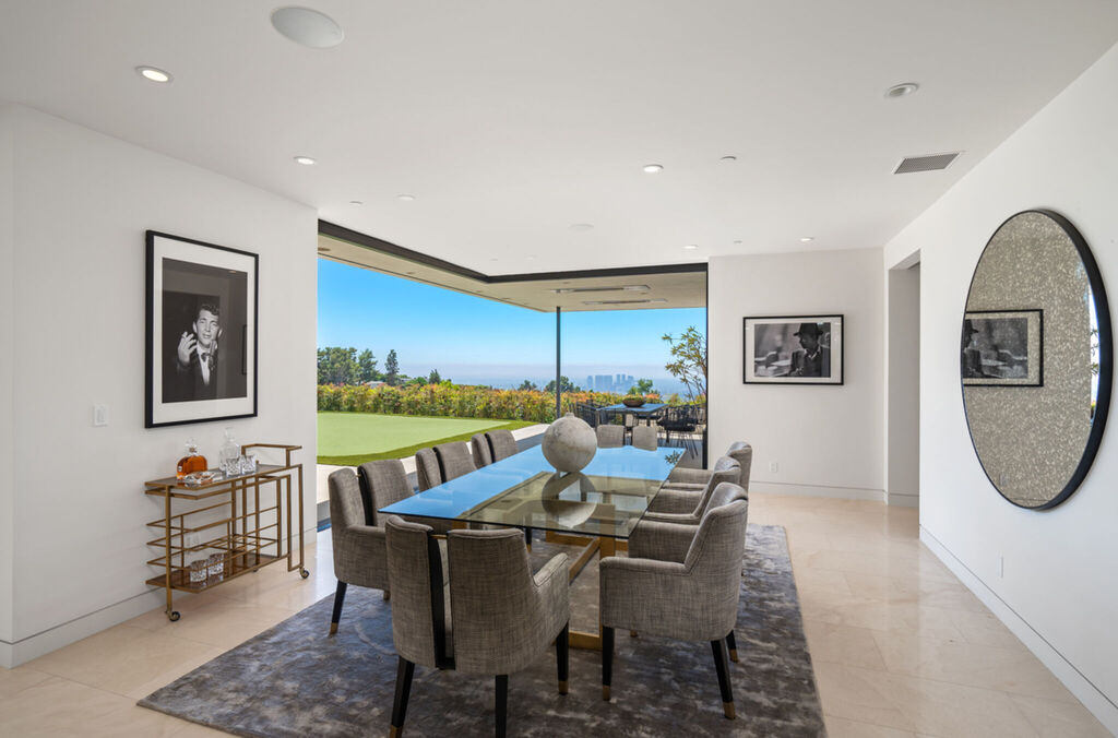 Completely redesigned and carefully crafted, this home features open spaces and Fleetwood pocket doors throughout, seamlessly connecting the interior and exterior spaces and providing the ultimate California lifestyle. Situated on one of Trousdale’s most sought-after streets, the property boasts breathtaking city and ocean views from nearly every room, setting a new standard for luxury and quality. The renowned contractor, Gordon Gibson, ensured the highest level of craftsmanship. The architecture is a captivating blend of mid-century clean lines and contemporary elegance, creating a harmonious and welcoming atmosphere that maximizes space and proportions. This private and gated residence is equipped with state-of-the-art Crestron home automation, offering effortless functionality and top-notch security. From the frameless glass garage doors to the elegant Calcutta gold kitchen counters and backsplash, every detail was carefully considered. The zero-edge pool houses a floating spa, adding to the property’s charm and luxury. This newly redesigned home in Trousdale is truly a masterpiece of sophisticated and thoughtful design.