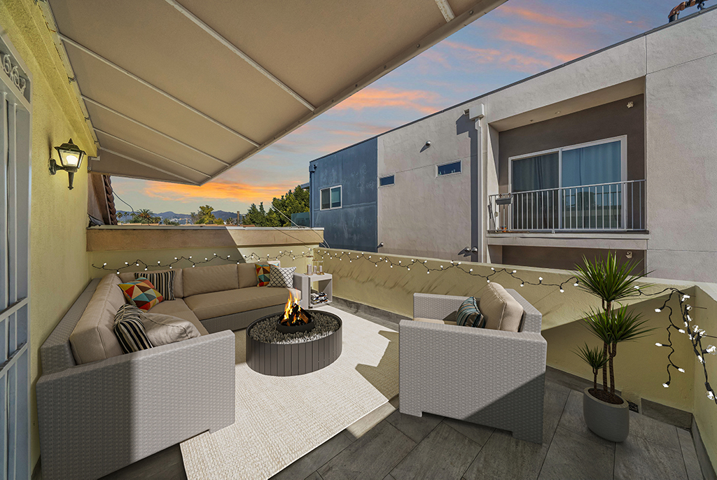 This space flows effortlessly to the private rooftop deck adorned with new Italian tiles, where breathtaking sweeping views of the city await. Whether hosting intimate gatherings or savoring peaceful evenings, this rooftop retreat is sure to elevate your lifestyle. Additional highlights include custom-built oak stairs, an elegant statement chandelier, a cozy fireplace, a brand-new washer and dryer, and two secure tandem parking spaces. Enjoy peace of mind with controlled building access and an all-inclusive HOA covering trash, water, insurance, and building maintenance. Nestled just south of Melrose Avenue, you’re minutes from world-class dining, trendy boutiques, and entertainment hotspots. The nearby charm of Larchmont Village adds a touch of classic Los Angeles living to your vibrant, modern lifestyle. This penthouse is more than a home – it’s a tranquil retreat in the heart of the city, offering the perfect blend of luxury, convenience, and unmatched views!