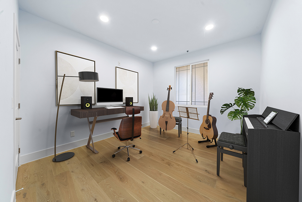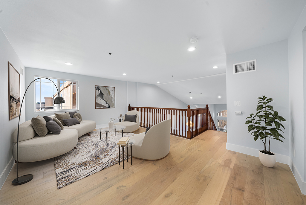 The beautifully designed kitchen is a chef’s dream, featuring European marble countertops and backsplash, glass-front cabinetry, and new stainless steel appliances, including a sink, dishwasher, oven, and refrigerator. Whether cooking for family or entertaining friends, this kitchen is as functional as it is stylish. The primary suite impresses with its lofty ceilings, a private balcony entrance, and an en-suite bath featuring a luxurious soaking tub, walk-in shower, and a generous walk-in closet. Two additional bedrooms offer comfortable spaces with ample storage, perfect for guests, home offices, or creative spaces. Head upstairs to discover a versatile loft-style den – perfect for a home office, creative studio, or entertainment area.
