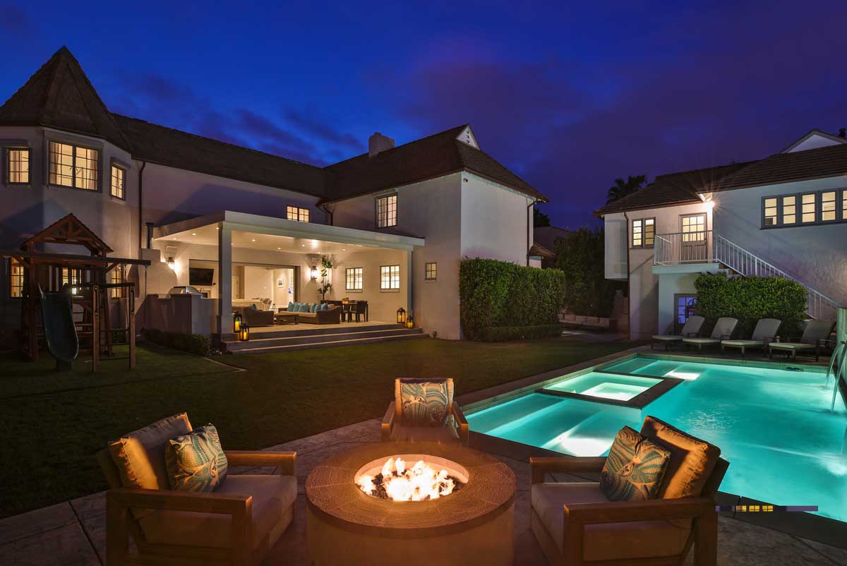 Enjoy al fresco dining, with a built-in barbecue and pizza oven, while spending the day by the pool or entertaining friends at night by the fire pit.