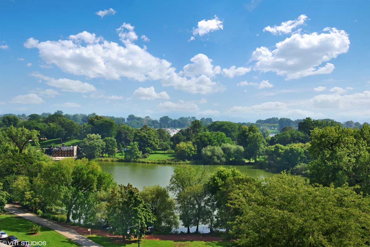 It’s located just off of Chicago’s famous Lincoln Park, providing lakefront views throughout.