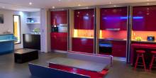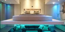 Yo! Sushi and Yotel founder Simon Woodroffe launched a prototype Yo! Home apartment at 100% Design during London’s Design Festival. Wondering what a Yo! Home apartment looks like? Well, it features mechanized floors, and furniture therein emerges from the walls, compactly fitting the furnishings of the average two-bedroom house into the space of a one-bedroom apartment. The apartment features two bedrooms, two living rooms, a cinema, an office, a kitchen and dining room, a bathroom and a wine cellar.
