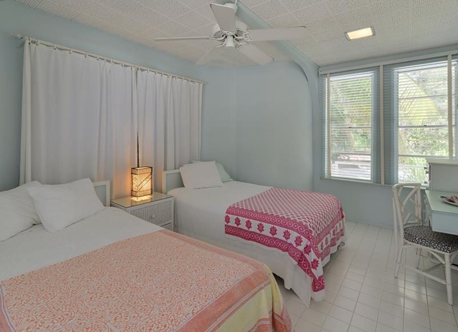 Accented with bright furnishings and mint detailing, the hotelier’s Gilmore Estate—known as the Bay Bourne Houseboat by locals—was originally docked next door at the Cheeca Lodge during the 1960s, when Hurricane Donna’s arrival caused it to break away from her mooring and swept her onto land. The craft was then rolled on telephone poles to its current permanent resting spot on the beach.