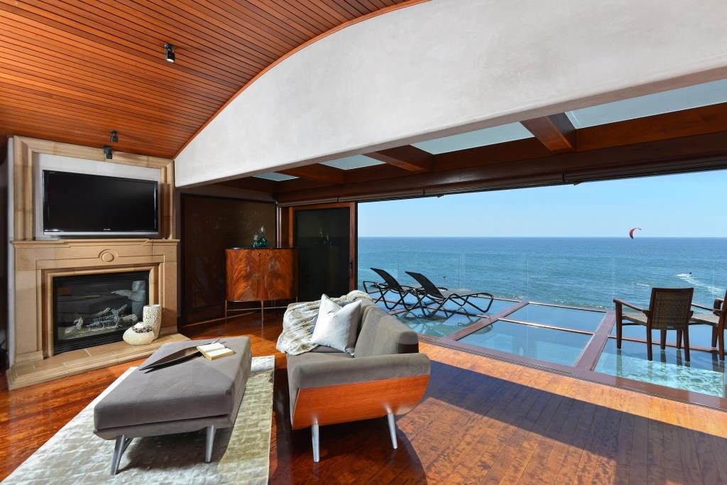 Two additional bedrooms are located upstairs, one of which is perfect as a guest suite with a private access. Floor to ceiling disappearing doors provide a seamless transition onto the oceanfront patio where you can relax by the fire pit, take a soak in the spa, or swim in the pool with its soothing waterfalls and endless pool swim jets.