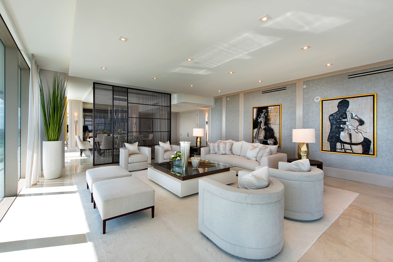 This corner, oceanfront condo at the recently opened Oceana in Bal Harbour was designed, built and furnished by Steven G.