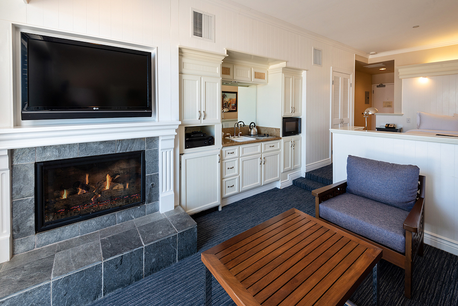- The units are well-appointed in a desirable and timeless coastal-beach style and include a dedicated sleeping space with a king-sized bed, desk area, a generously sized living room with a queen pull out sofa, efficiency kitchen, fireplace, full bath with a separate oversized soaking tub and shower.