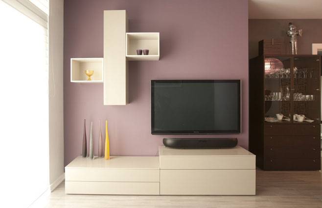 LOCZI Design: This soft plum wall contrasted with simple and elegant furniture creates modernity and charm to this South Beach, San Francisco remodel.