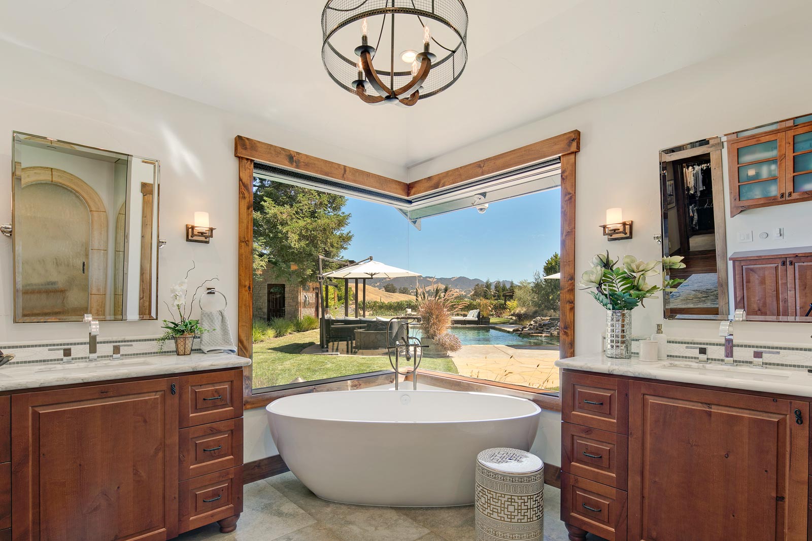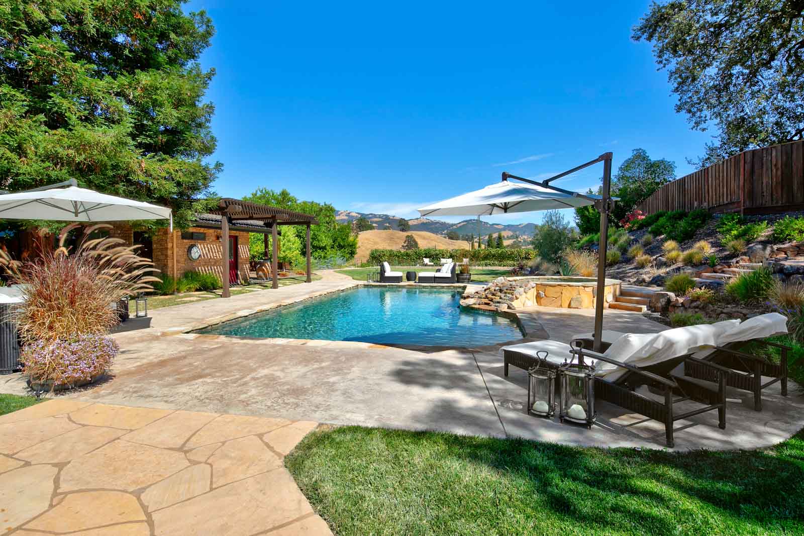 The backdrop of Mount Diablo is mesmerizing as the colors change with every sunrise and sunset. The grounds include the rare combination of flat yard and captivating views. Spectacular setting on a one-acre lot with vineyard, pool, spa, fire pit, bocce ball court, and full outdoor kitchen. Grapes to wine on-site: the home includes a sophisticated attached winery room that is configured to support every step of wine production. The vineyard yields two barrels of Tempranillo wine.