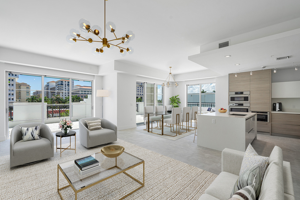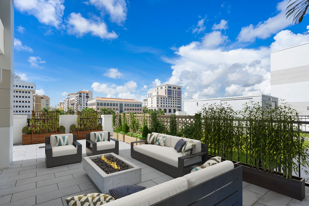 Creatively customized corner 2-bedroom with den residence, with expansive wrap-around terrace in Tower 155, downtown Boca’s newest luxury condo building featuring ten-foot ceilings, custom ceiling treatments, Italian porcelain flooring, luxurious Italian cabinets and Quartz countertops. Upgraded appliances by Miele and Wolf include induction range and steam oven. Master Bedroom designed with His & Her private bathrooms and expanded closets. Largest terrace in building, pre-plumbed for irrigation. Tower 155’s luxury amenities include a sundeck overlooking Mizner Park that offers a hot tub, chaise lounges, a vibrant bar scene and private cabanas. Much like an exotic destination resort where your every desire is catered to, you will find yourself immersed in a sublime level of extravagance.