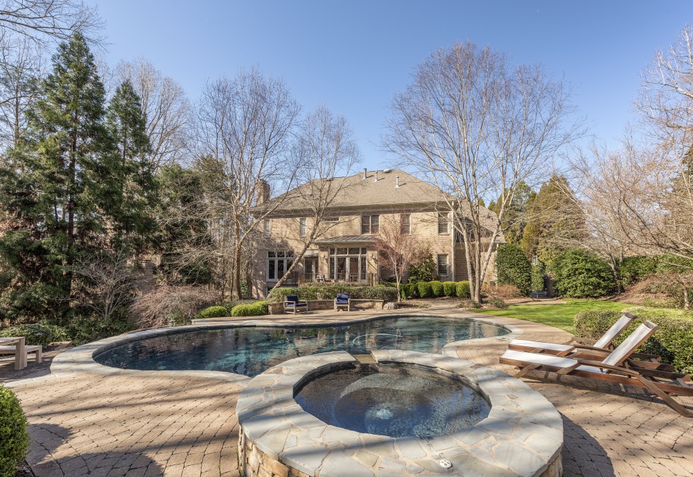 Stunning custom home built by Gene Harrington on one of the most private lots in Highgate. Enjoy your own backyard oasis with custom salt water pool and hotter, outdoor fireplace and plenty of sitting areas and play areas that are totally private. Inside features 5+ bedrooms with flexible space to allow for a play room, office and exercise room.  Huge master suite with a fireplace and sitting room/office, elegant bath with a new tub and a walk-in closet.  Large kitchen/breakfast area opens to Family room with fireplace and lots of natural light.  Basement has rec room fireplace and exercise room/bedroom with a full bath.  Large unheated storage room can be accessed from the basement – an ideal space for a workshop.  10 foot ceilings on main floor.  Hardwood floors throughout.  First floor guest room is perfect for visiting parents.